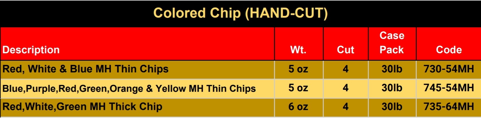 Our chips, corn and flour tortillas can even be done in Red, Orange, Yellow, Green, Blue, Purple, Pink and Black.