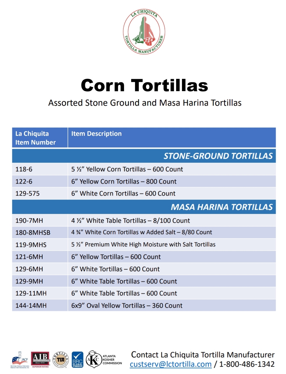 TASTE THE DIFFERENCE!!!La Chiquita corn and flour tortillas are 100% Authentic Mexican Products of the highest quality.